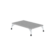 Die rutschsichere Plattform aus Aluminium-Warzenblech sorgt für einen sicheren Stand, während die stabil verschweißte Rohrkonstruktion eine hohe Belastbarkeit gewährleistet. Mit rutschfesten Kunststoffschuhen ausgestattet, bleibt das Arbeitspodest auch auf glatten Böden standfest. Maximale Sicherheit bei maximaler Flexibilität.