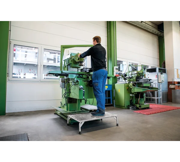 - Große Trittfläche mit rutschhemmendem Warzenblech