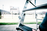 - Konische Holmführung und stabil verschraubtes Aluminium-Leitergelenk