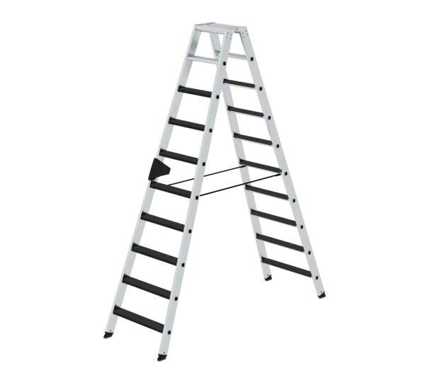 - Zusätzlich: ein 4-fach verschraubtes, massives Leitergelenk aus Aluminium und eine Spreizsicherung mit zwei hochfesten Polyestergurten.