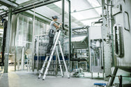 - Die Leiter hat eine 4-fach gebördelte Stufen-/Holmverbindung und eine konische Holmführung für einen sicheren Stand.